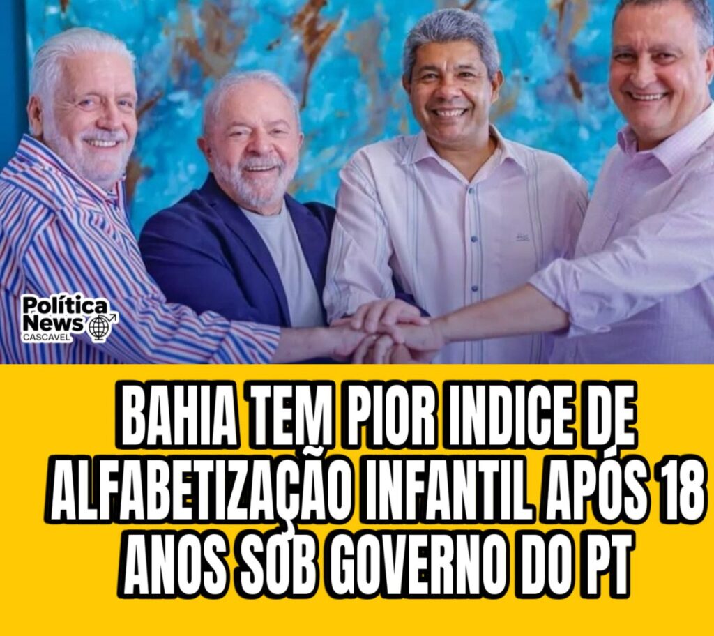 Mesmo sob gestão petista desde 2007, índice de alfabetização na Bahia fica em apenas 36%, bem abaixo da média nacional. A Bahia, governada há mais de 18 anos pelo Partido dos Trabalhadores (PT), apresentou o pior índice de alfabetização do Brasil em 2024, segundo dados divulgados pelo Ministério da Educação (MEC), com base no Indicador Criança Alfabetizada, elaborado pelo Inep. Apenas 36% das crianças do 2° ano do ensino fundamental conseguem ler e escrever textos simples — muito abaixo da média nacional de 59,2%.