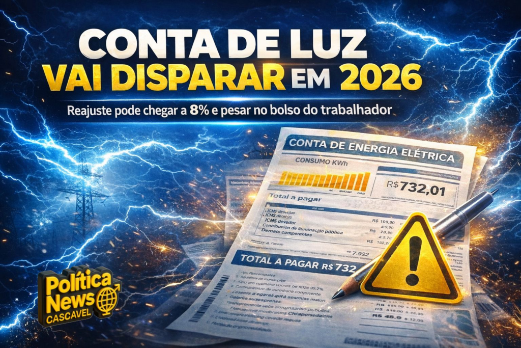 O brasileiro já sofre diariamente com o alto custo de vida, mas a situação tende a piorar ainda mais em 2026. A conta de energia elétrica deve sofrer um novo reajuste significativo, com aumento estimado entre 5,1% e até 7,95%, podendo chegar próximo de 8%, segundo projeções do setor elétrico.