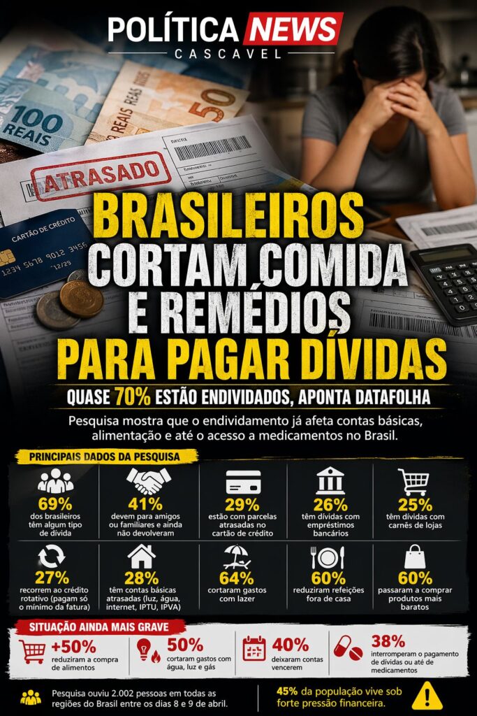 Uma pesquisa recente do Datafolha revelou um cenário preocupante para a economia das famílias brasileiras: quase 70% da população possui algum tipo de dívida atualmente. O levantamento mostra que o problema vai muito além de bancos e cartões de crédito, atingindo também relações pessoais.