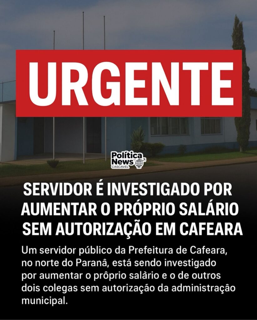 Um servidor público da Prefeitura de Cafeara, no norte do Paraná, está sendo investigado por aumentar o próprio salário e o de outros dois colegas sem autorização da administração municipal.